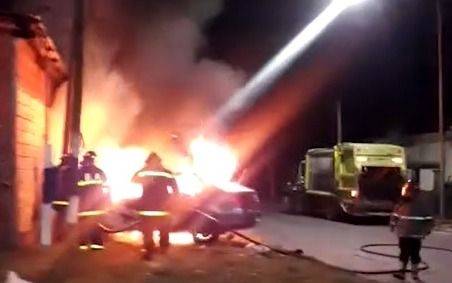 Un automóvil Volkswagen Voyage que por un accidente se había incrustado en un lateral una parrilla ubicada en 120 y 6 fue incendiado durante la madrugada en una típica acción de quemacoches que quedó registrada en un video. El hecho habría sido cometido por un sujeto que se trasladaba en una motocicleta donde llevaba un bidón con combustible.