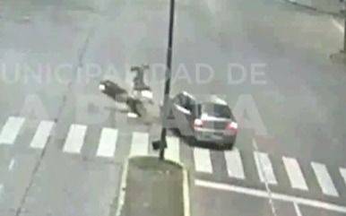 Según se puede observar, un automóvil marca Fiat, modelo Palio y color gris, circulaba por diagonal 73 cuando, al intentar doblar para continuar por calle 33, embistió a un motovehículo cuyo conductor salió volando y terminó cayendo a metros del lugar del incidente.