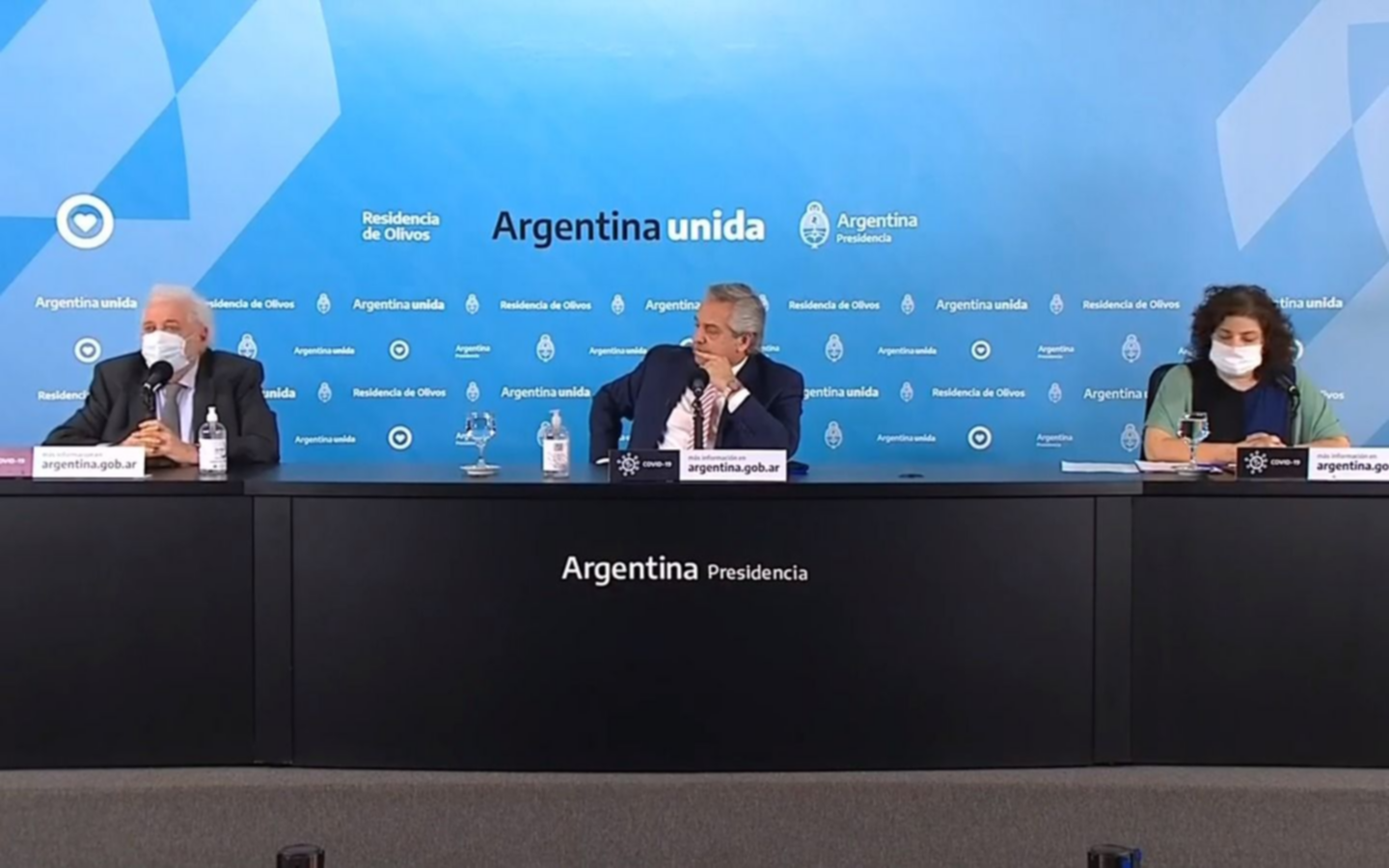 El presidente Alberto Fernández y el ministro de salud de la Nación Ginés González encabezaron la conferencia de prensa que se realizó en la quinta de Olivos en la que confirmaron un acuerdo para la producción y distribución de la vacuna de Oxford contra el coronavirus. Argentina producirá 200 millones de dosis y podría estar lista para aplicarse en el primer semestre de 2021.