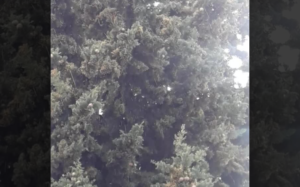 Según sostuvo en un mensaje que envió a través de Whatsapp, cuando comenzó a lloviznar se le ocurrió mirar por la ventana de su casa y se encontraba en esa acción de contemplación cuando advirtió que "había algo blanco en el pino del fondo de su casa".