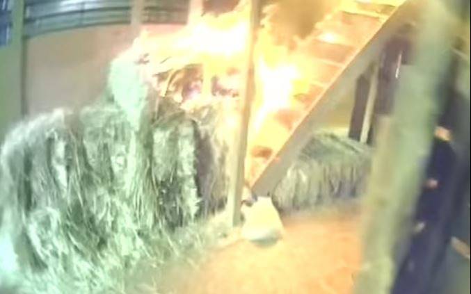 El fuego se había desatado en un establecimiento rural de una familia de granjeros,y mientras el granero ardía, los policías fueron directo a rescatar al animal que se encontraba atado dentro.