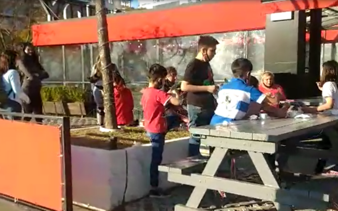 En cuanto a los negocios gastronómicos, y a pesar de que aùn no tienen habilitado poner mesas y sillas, pueden vender desde la puerta y los consumidores después de las arreglan para comer y/o beber lo que compraron en algún rincòn de la vìa pùblica: en Puerto Madero utilizaron desde asientos públicos hasta maseteros.