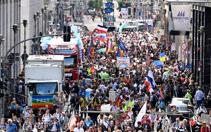 La policía de Berlín estimó en casi 18.000 personas la asistencia a la manifestación, que recorrió el distrito de Mitte en dirección a la Puerta de Brandeburgo, informó la agencia de noticias DPA.