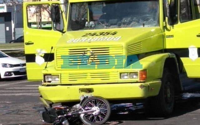 Según pudo averiguar este diario, el siniestro tuvo lugar en horas de la tarde de este jueves y, como se indicó, involucró a una moto y a un rodado de gran porte perteneciente a Bomberos de San Carlos que se dirigía a reabastecerse de agua para combatir un incendio que se había desatado en la parrilla ubicada en 520, entre 17 y 18.