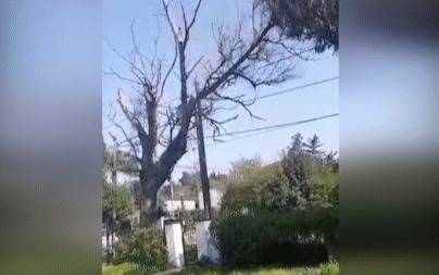 "Es un eucalipto que lo venimos cuidando hace muchos años. Y ahora aparecieron estos muchachos de la nada, con una motosierra y lo podaron todo. Y como si fuera poco, no sólo arruinaron la cabina de gas de un vecino, sino que se pusieron a vender la leña que obtuvieron de la poda", manifestaron los denunciantes.