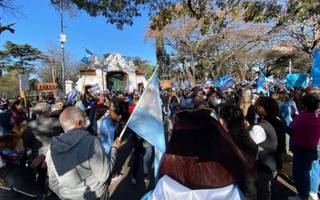 Pasadas las 16 -la hora señalada por la convocatoria gestada en redes sociales grupos de familias, adultos mayores y también algunos jóvenes poblaron el sendero central de la Plaza, con los barbijos de rigor y portando banderas argentinas o carteles.