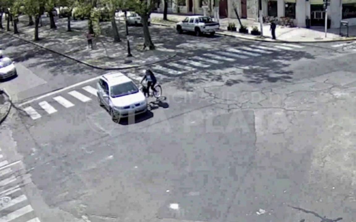No hubo heridos pero las imágenes impresionan. Una mujer que circulaba en bicicleta chocó con un automóvil en la esquina de 51 y 23.