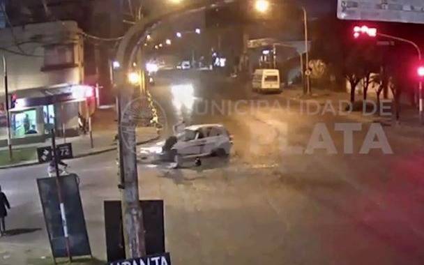 El hecho quedó registrado en las cámaras de seguridad de la Municipalidad de La Plata y muestra cómo el rodado de mayor porte impacta al otro arrojando a su conductor al asfalto.