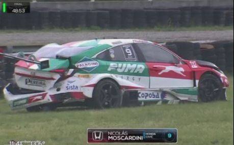 Moscardini largó desde la tercera fila hoy en la final que se corría desde las 11,30, con televisación de TyC Sports en el autódromo porteño Oscar y Juan Gálvez y tras un toque con Armellini en primera vuelta se despistó y debió abandonar la carrera tras impactar contra una de las contenciones del autódromo. A pesar del impacto, el piloto resultó ileso.