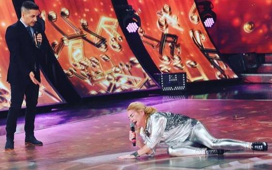 Esmeralda arrancó con una previa en la que sorprendió a todos cuando se arrojó al piso para, a los gritos, rogarle a Ángel de Brito que cantara con ella un tema musical. Pero, no logró convencer al conductor y periodista.