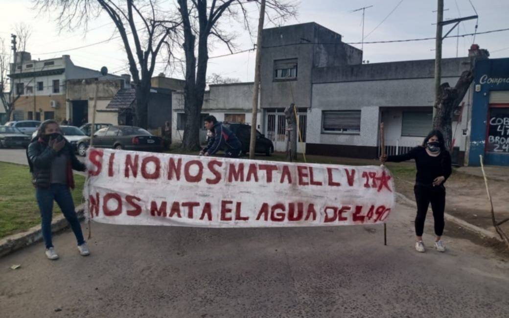 Un grupo de vecinos pertenecientes al barrio Puente de Fierro realizaron este viernes un reclamo -que incluyó un corte de tránsito- y pusieron un pasacalles con una particular inscripción: "Si no nos mata el Covid, no mata el agua de la 90".