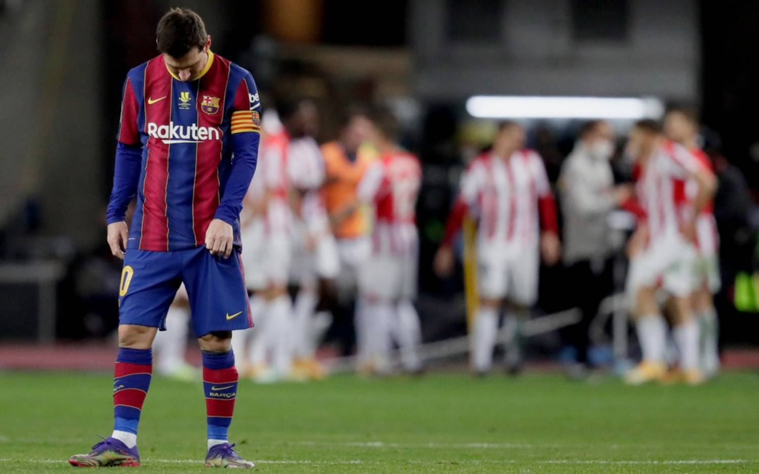 Lionel Messi se fue expulsado esta tarde en el Barcelona, que dejó una imagen más que opaca y perdió la final de la Supercopa de Fútbol de España, al caer con Athletic Bilbao, por 3-2, en el estadio La Cartuja de Sevilla.