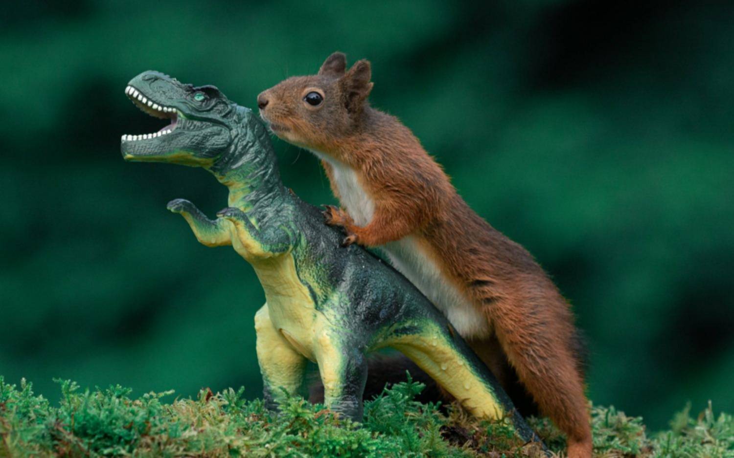 Una ardilla llevando un carrito de supermercado. Otra debajo de un paraguas. Sin duda que con su mano y su cámara consigue retratos asombrosos.