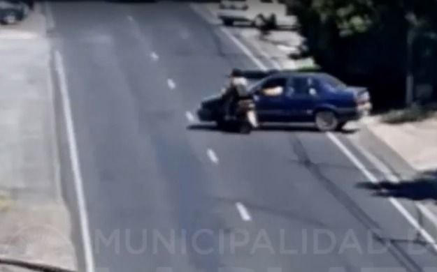 Un automovilista impactó a una moto y su conductora debió ser atendida por personal médico. El accidente quedó registrado en las cámaras de seguridad de la Municipalidad de La Plata.