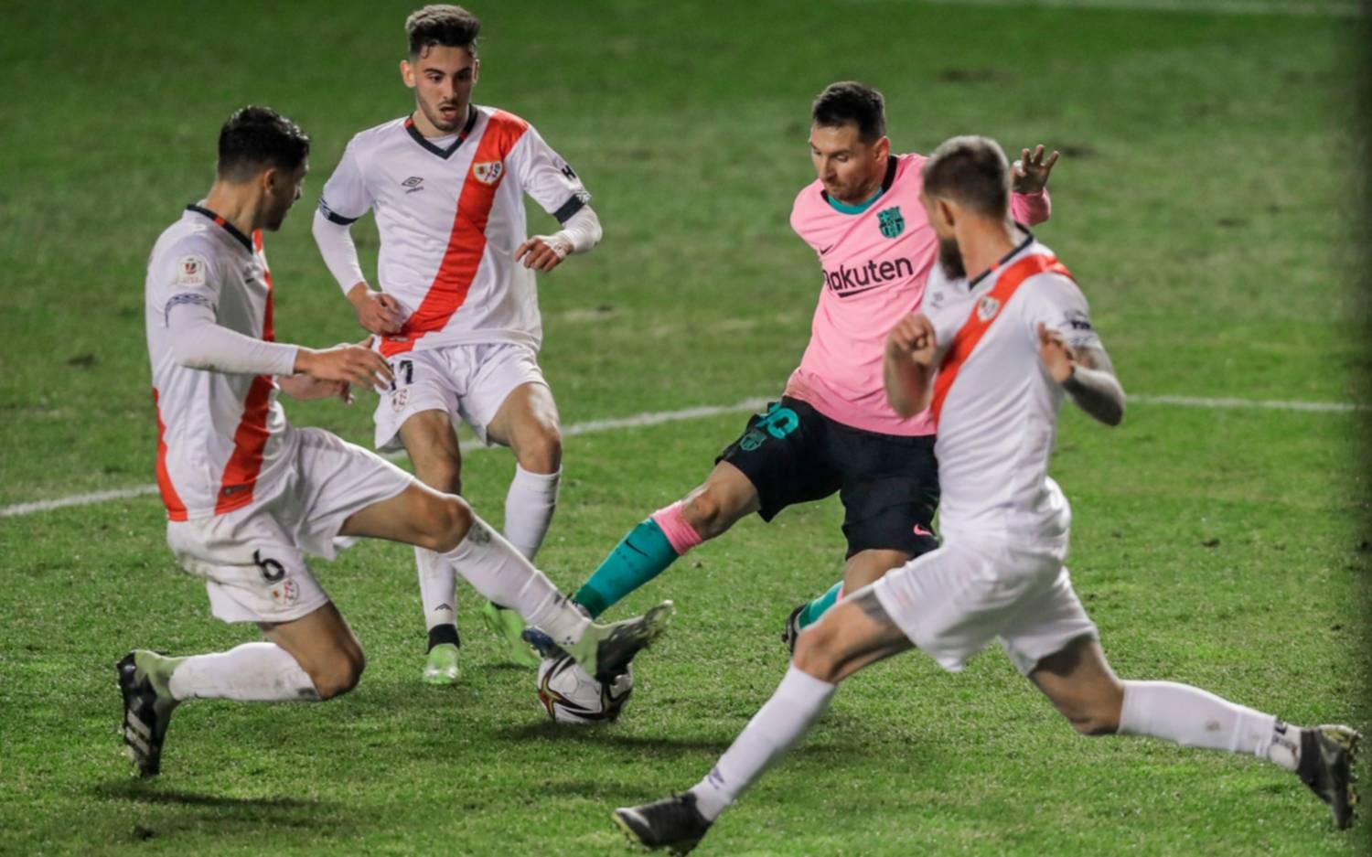El crack Lionel Messi convirtió hoy un gol para el triunfo de Barcelona ante Rayo Vallecano por 2 a 1, con récord incluido, para la clasificación a los cuartos de final de la Copa del Rey.
