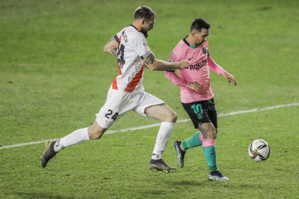 El crack rosario Lionel Messi convirtió ayer un gol para el triunfo de Barcelona ante Rayo Vallecano por 2 a 1, con récord incluido, para la clasificación a los cuartos de final de la Copa del Rey.