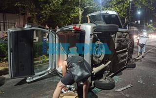 Susto en pleno centro de La Plata por el vuelco de una camioneta de PAMI