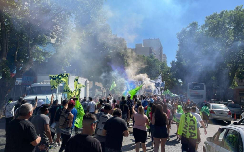 Integrantes de la lista blanca y azul de la UOCRA se concentraron esta mañana en las inmediaciones de Plaza Italia para marchar en apoyo al líder de ese sector de la Delegación La Plata, Iván Tobar.