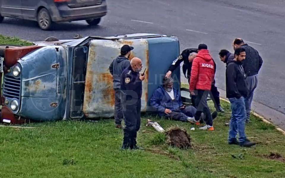 Un hombre que circulaba por Ruta 36 y 520 en una camioneta tuvo que ser hospitalizado en las últimas horas, por las heridas que sufrió al morder el cordón y volcar sobre la rotonda, confirmaron fuentes oficiales.