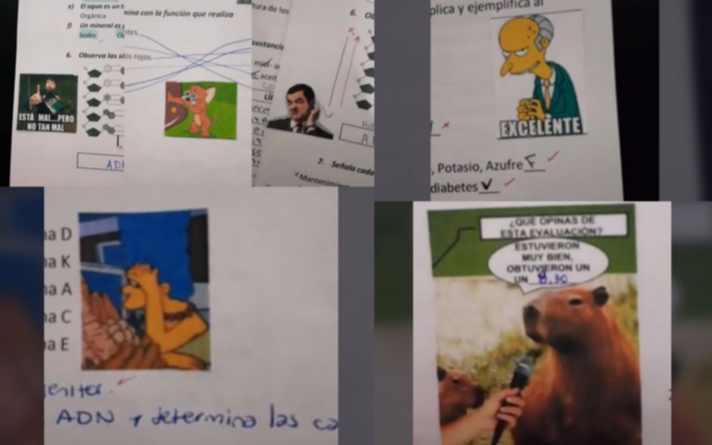En una de sus correcciones se lee: "Dice la profe que estudien esto porque la próxima les pone cero". En tanto que en otro se ve al Señor Burns, de Los Simpson, con la palabra "excelente", un clásico del dueño de la planta nuclear de Springfield.