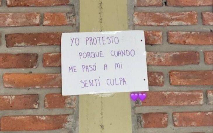 Ahora este diario pudo acceder a distintos video que muestran por dentro cómo fue la protesta en el centro educativo de 505 y 10, que generó tensión en esa comunidad educativa. Además también pegaron carteles en las paredes para manifestarse y algunos de ellos que fueron enviados al WhatsApp de este medio rezaban: "No obliguen a las mujeres a cuidar el largo de sus polleras, enseñen al hombre que largo o corto el respeto debe ser el mismo" y "Yo protesto porque cuando me pasó a mí sentí culpa".