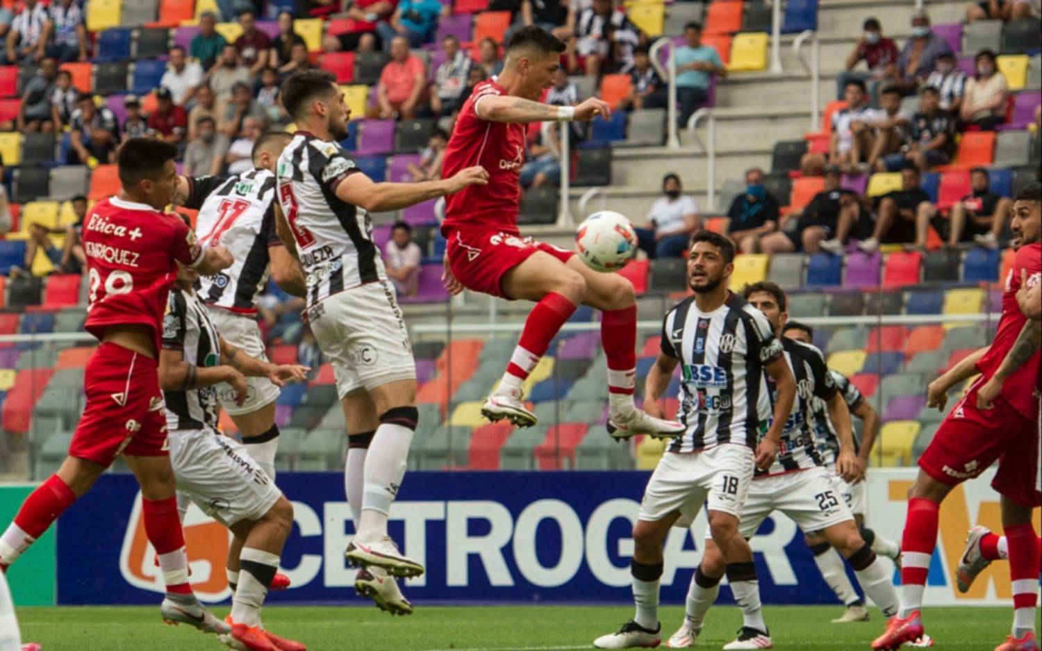 A los 46, Henríquez volvió a ganar en el área santiagueña en un centro de Cristaldo y su cabezazo dio en el travesaño cuando finalizaba el primer tiempo.