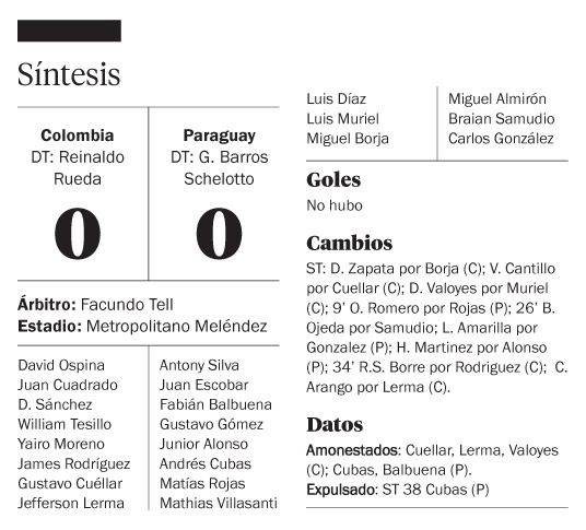 Colombia amplió su ayuno de gol y cedió anoche ante Paraguay un empate 0-0 en casa, que la hace tambalear en la pelea por uno de los puestos directos al Mundial de Qatar-2022.