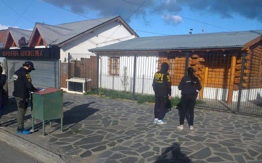 Otros dos allanamientos se hicieron en viviendas particulares de Esquel, de donde ambos acusados serían oriundos, reportó el Ministerio Público Fiscal de Río Negro, que señaló que el hombre detenido en la mañana de ayer será trasladado a Bariloche para su correspondiente imputación.