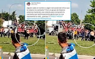 El lamentable episodio ocurrió sobre la rambla de 32, que da enfrente al estadio y tal como se puede apreciar en las imágenes, un grupo -que se hace tumulto- de "hinchas" se acercan a un joven que llevaba puesta una camiseta de Estudiantes y en medio de un un acto violento, no solo lo golpearon, sino que además se la quitaron y robaron.