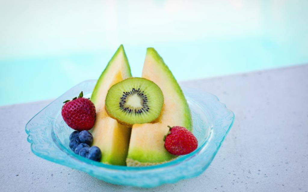 Distribuir la pulpa cortada en las mitades de melón. Agregar el helado. Completar con las tajadas de frutilla y kiwi. Ubicar cada medio melón en un recipiente de vidrio. Servir enseguida.