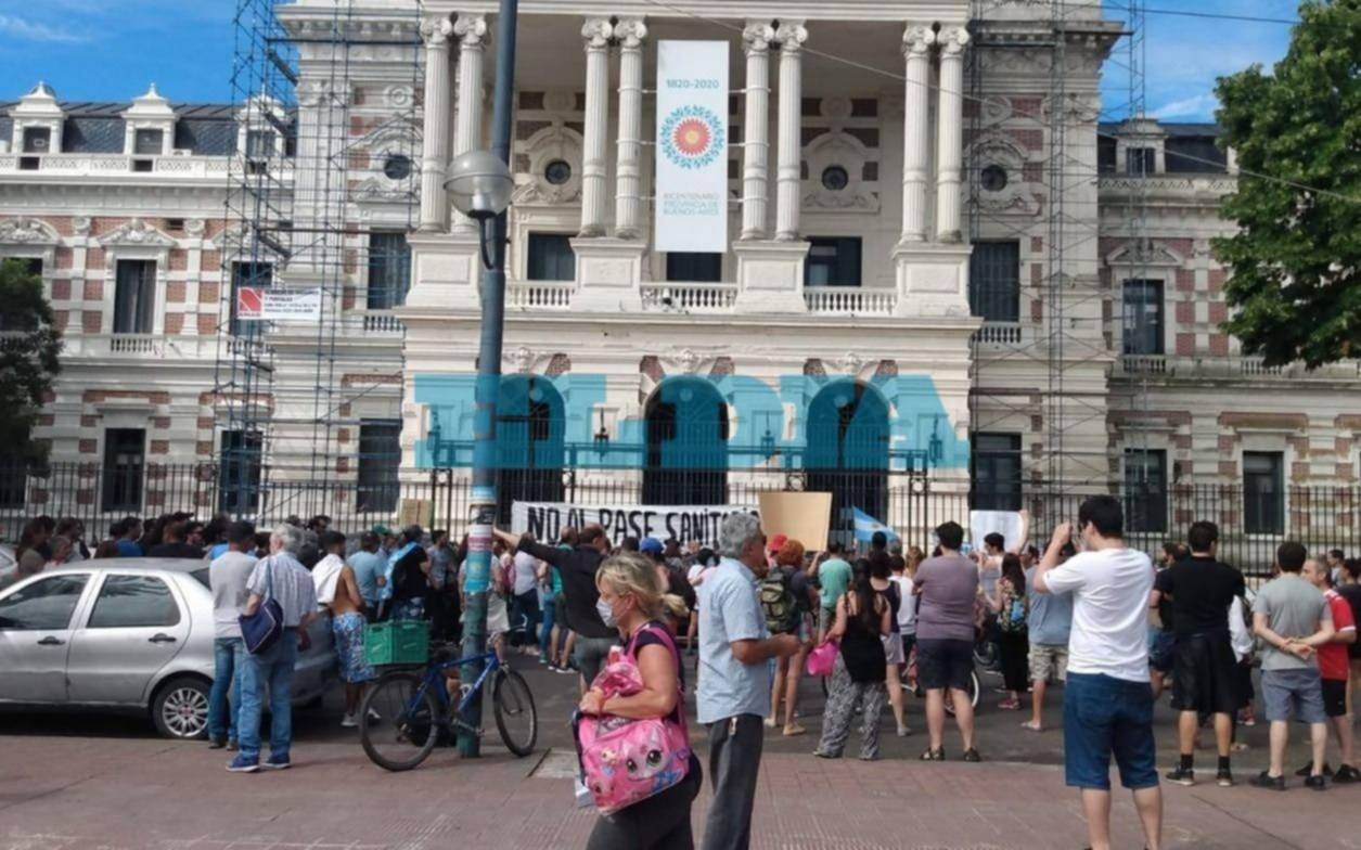Un nutrido grupo de personas realiza esta tarde una protesta contra el pase sanitario y los esquemas de vacunación contra el coronavirus. El reclamo se realiza frente al palacio de Gobernación en calle 6 entre 51 y 53.