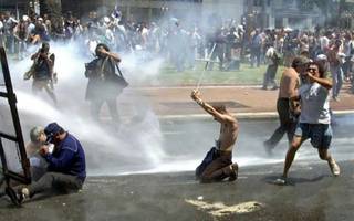 Cavallo anuncia el ‘corralito’ que bloquea las cuentas bancarias. Se permite retirar solo 250 pesos semanales (equivalían a 250 dólares). Se desatan protestas frente a los bancos.