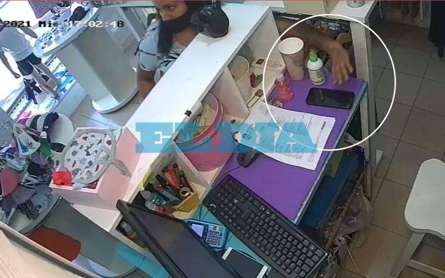 Un nuevo hecho de inseguridad se registró en un local de ropa -en donde venden indumentaria Infantil y bebés-, en donde una ladrona se hizo pasar como clienta, pero cuando en cuestión de segundos se robó una billetera y el celular del negocio que se encontraban en el sector de la cobranza. Todo quedó registrado en las cámaras de seguridad.