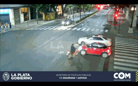 Durante las últimas horas un motociclista que transitaba sin caso, cruzó cuando el semáforo estaba en rojo y chocó contra un auto en el cruce de avenida 7 y calle 50. Las cámaras del Centro de Operaciones y Monitoreo de Comuna captaron el momento justo del choque.