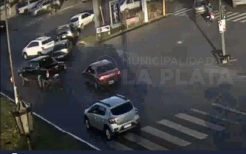 En las imágenes también puede distinguirse que, mientras que los rodados menores afectados frenaron, la camioneta continuó su camino sin parar.