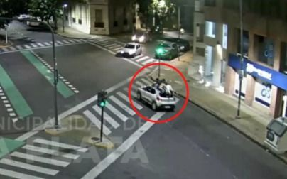 VIDEO: Locura en el centro platense: tres sujetos viajaron varias cuadras sobre el techo de un auto