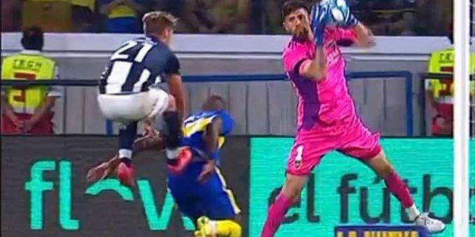 Una de esas fuertes patadas dio en la espalda del defensor tras una jugada en la que la pelota ya había quedado en manos del arquero Agustín Rossi. Milagrosamente ninguno de los dos vio ninguna de las dos tarjetas.