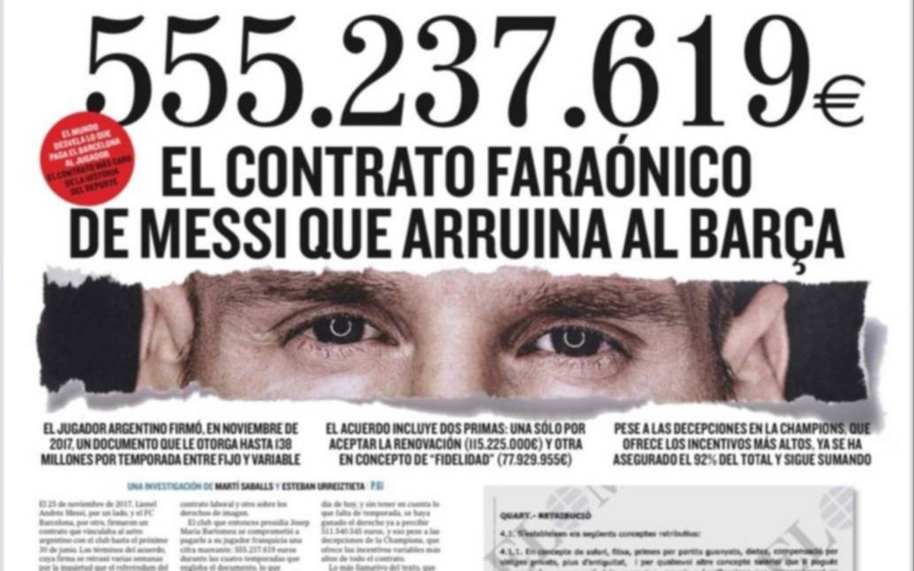El barcelonista Leo Messi también acciones legales contra el rotativo ‘El Mundo’, que en la víspera publicó en exclusiva el contrato que el argentino tiene firmado con el Barcelona y que le reportarían unos 555 millones de euros en los últimos cuatro años.