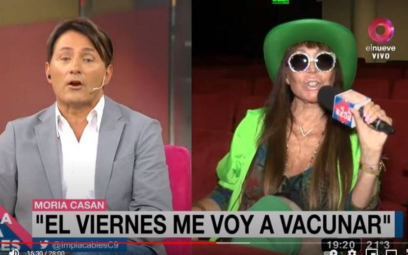 Durante el fin de semana, en diálogo con Implacables, el programa que conduce Susana Rocassalvo, Moria Casán afirmó que “soy pro-vacuna, me voy a vacunar con la Sputnik V".