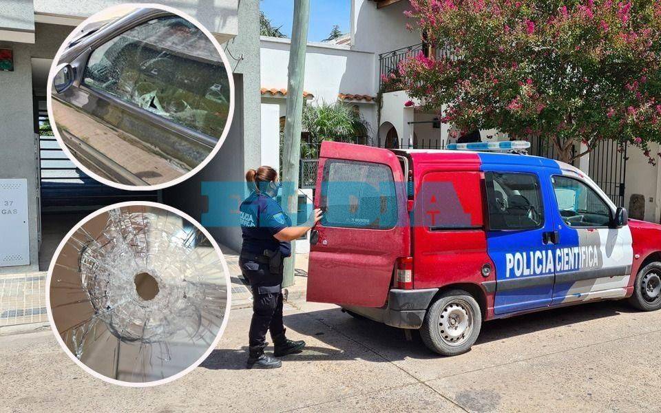 Además, como se ven en las fotos y en el video, el Clio quedó "agujereado" en varias partes de la carrocería y hasta uno de los proyectiles dio de lleno y rompió el vidrio de la puerta del edificio.