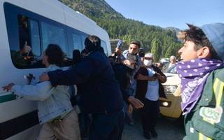 Manifestantes agredieron la combi de Alberto Fernández en Chubut: piedrazos y un vidrio roto