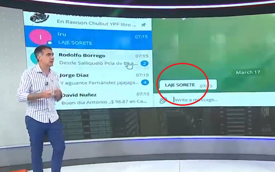 Pero de repente, se vio al ire un hiriente mensaje contra el periodista: "Laje sorete". Si bien podría haberlo dejado pasar, decidió contestarle al espectador: “Y bueno, son opiniones... Son opiniones... Qué se yo, no tengo ningún problema... Doy la cara y me la banco todos los días, no como vos que lo escribís en un mensaje anónimo”.