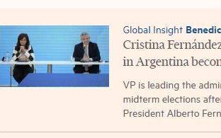 El diario económico Financial Times dedicó hoy un duro artículo a la situación política de la Argentina en el que no sólo menciona la caída en el apoyo al presidente Alberto Fernández sino también el cada vez más preponderante papel que está desarrollando la vicepresidenta Cristina Kirchner dentro del Gobierno.