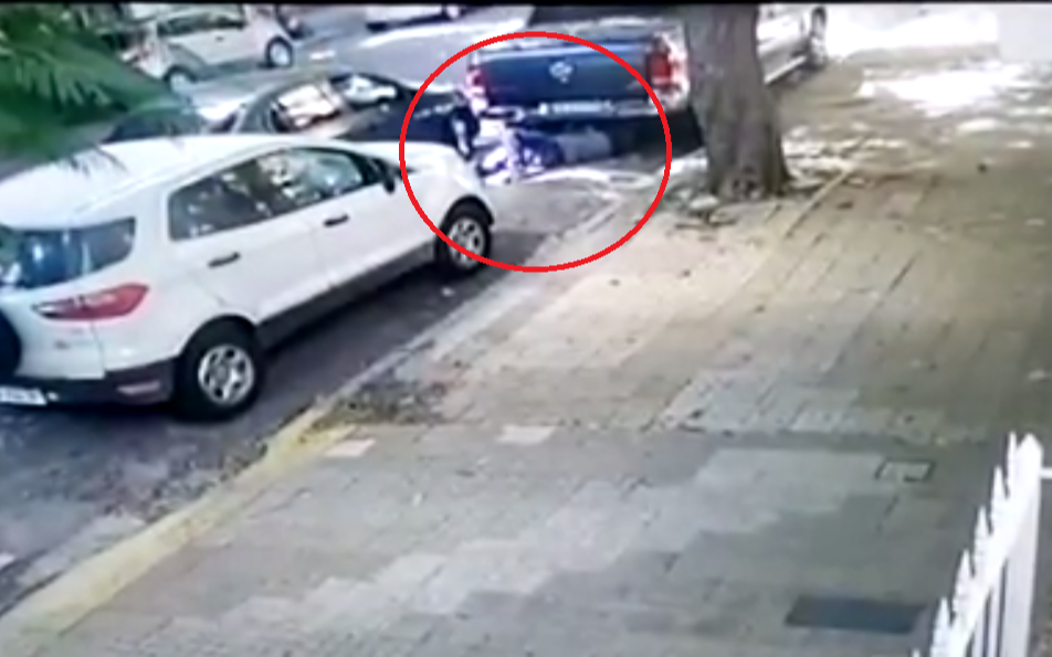 El hecho ocurrió a las 13:30 horas y quedó todo filmado por las cámaras de seguridad. "La rueda va y viene, pero me importa la impunidad con la que se maneja esta gente", aseguró el dueño del vehículo en diálogo con estemedio.
