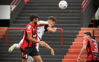 Todos luchan y esperan que la pelota llegue al área. gimnasia sufrió un duro cachetazo ante un patronato más efectivo / prensa GELP