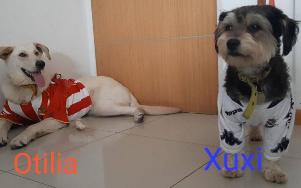 "Así estamos en casa...Esperando el clásico! Saludos Ana More y Agustín. Las dueñas de la casa Otilia y Xuxi".