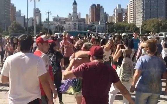Una verdadera multitud se congregó este mediodía en la puerta de la Catedral de nuestra ciudad. En medio de la segunda ola de coronavirus, en la que La Plata registra récord de contagios y muertes en las últimas horas, cientos de personas se pudieron divisar en un festejo multitudinario.