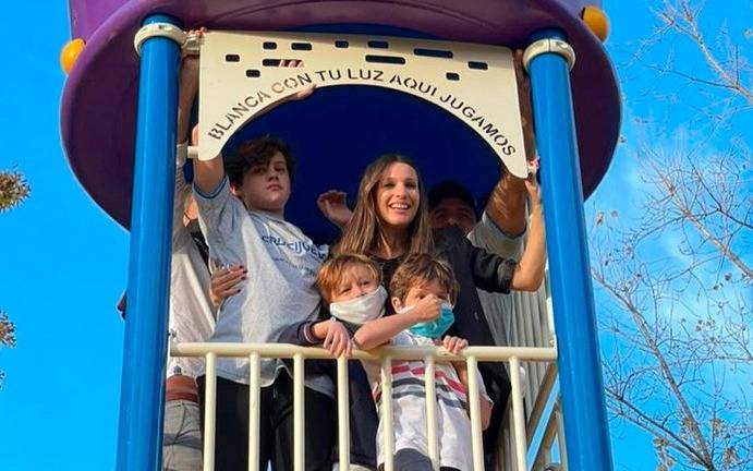 Pampita y Vicuña, quienes se separaron hace varios años pero permanecen unidos por Blanca y por los otros tres hijos que tienen en común, Bautista, Beltrán y Benicio, colocaron en el lugar una placa que versa “Blanca, con tu luz aquí jugamos”.