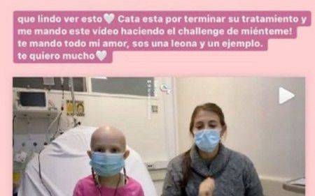 La ex chica Disney compartió el video en sus redes y no pudo evitar conmoverse por la historia de Cata. “Qué lindo ver esto. Cata está por terminar su tratamiento y me mandó este video haciendo el challenge de Miénteme. Te mando todo mi amor, sos una leona y un ejemplo. Te quiero mucho”, escribió en sus historias en Instagram.