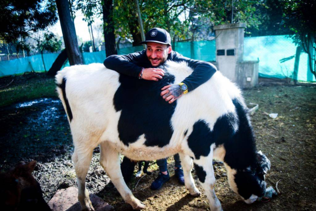 Al tiempo rescató a Rumy, un ternero que se supo tempranamente no iba a servir para la reproducción y ya estaba para ser sacrificado. El activista adora a ese pequeño holando-argentino blanco y negro que, aseguró, le cambió la vida: “Supe por un mensaje de una organización que estaban buscando un adoptante. Hicimos todos los trámites previos, le construimos su casita y en menos de un mes llegó. El representa un antes y un después en mi vida”, confía el joven. Otro toro joven, Oski, de color marrón, completa el pequeño “ganado” que habita su parque.